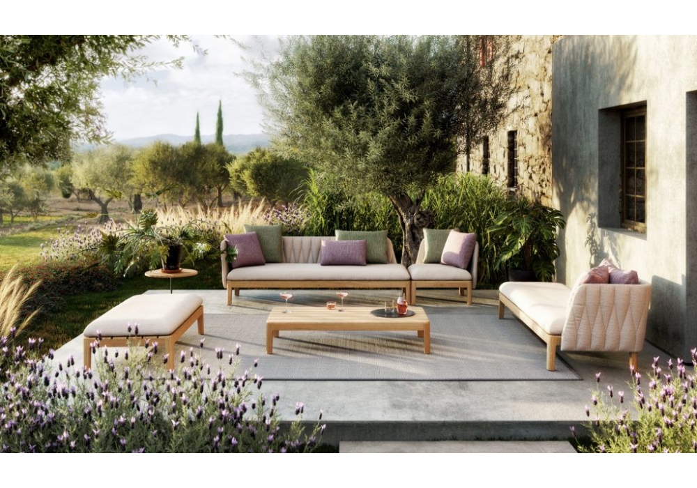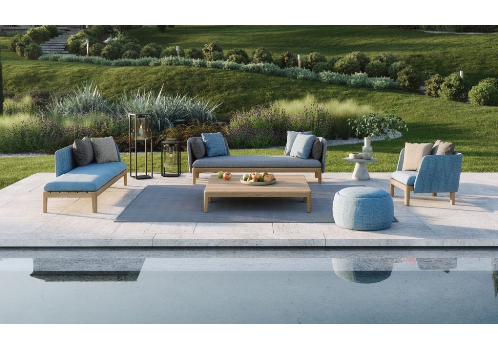Calypso Lounge conçu par Kris Van Puyvelde pour Royal Botania est un canapé d'extérieur avec structure en teck et revêtement en différentes finitions. Disponible en différentes tailles et combinaisons.