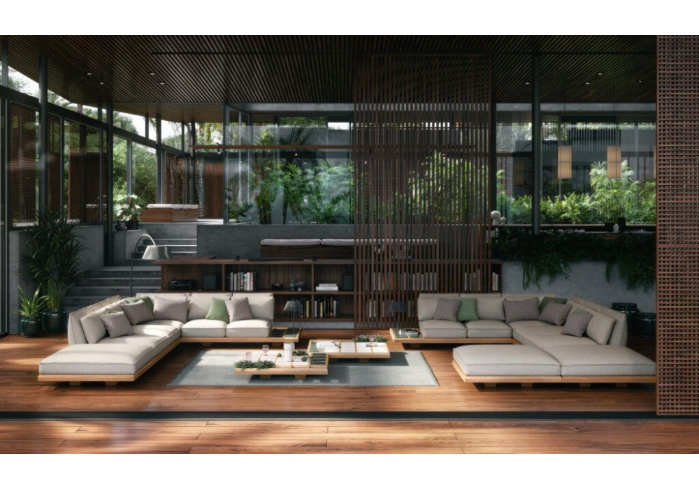 Mozaix Lounge conçu par Kris Van Puyvelde pour Royal Botania est un canapé d'extérieur avec structure en teck, acajou huilé ou aluminium disponible en quatre longueurs, permettant une large gamme de combinaisons pour créer votre propre cadre préféré. Coussins d'assise et de dossier rembourrés en différentes finitions.