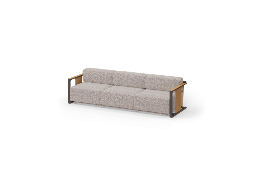 Tulum conçu par Eugeni Quitllet pour Vondom est un canapé réalisé avec une structure en métal et des détails en bois de teck. Doublure. Convient pour une utilisation intérieure et extérieure, très résistant aux différentes conditions météorologiques.