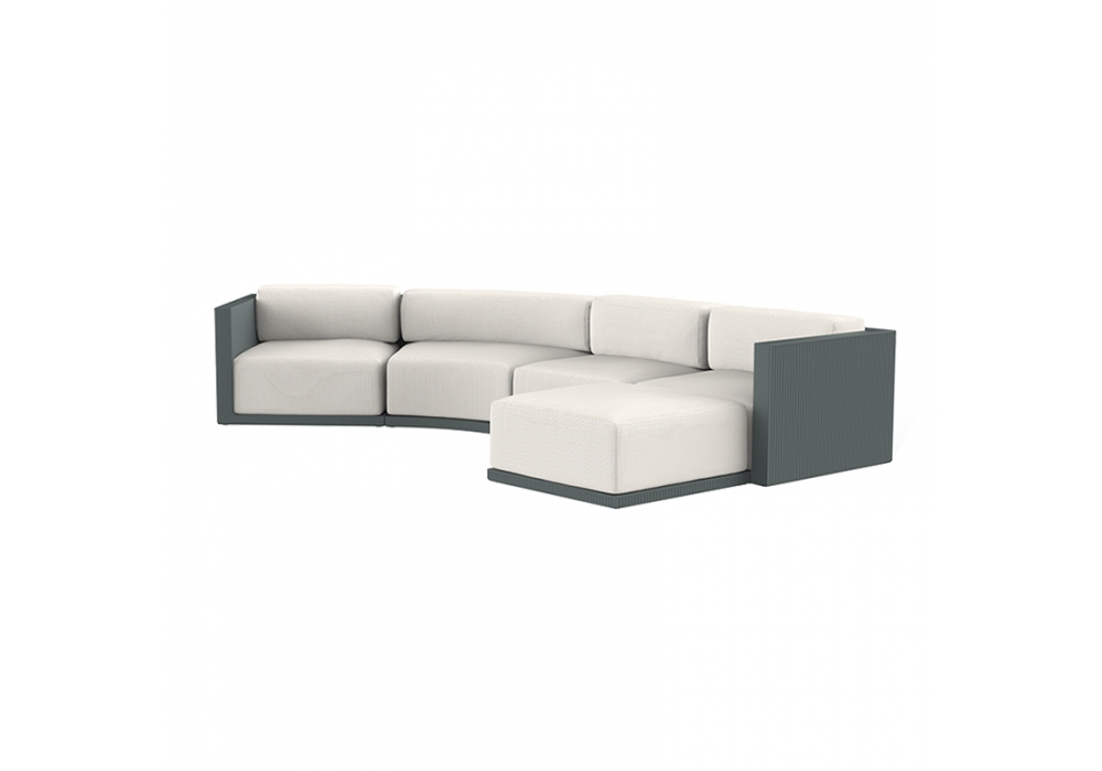 Gatsby conçu par Ramón Esteve pour Vondom est un canapé modulable réalisé en résine de polyéthylène par rotomoulage et coussins rembourrés avec revêtement en tissu. 100% recyclable. Article adapté à une utilisation intérieure et extérieure. Disponible en différentes finitions.