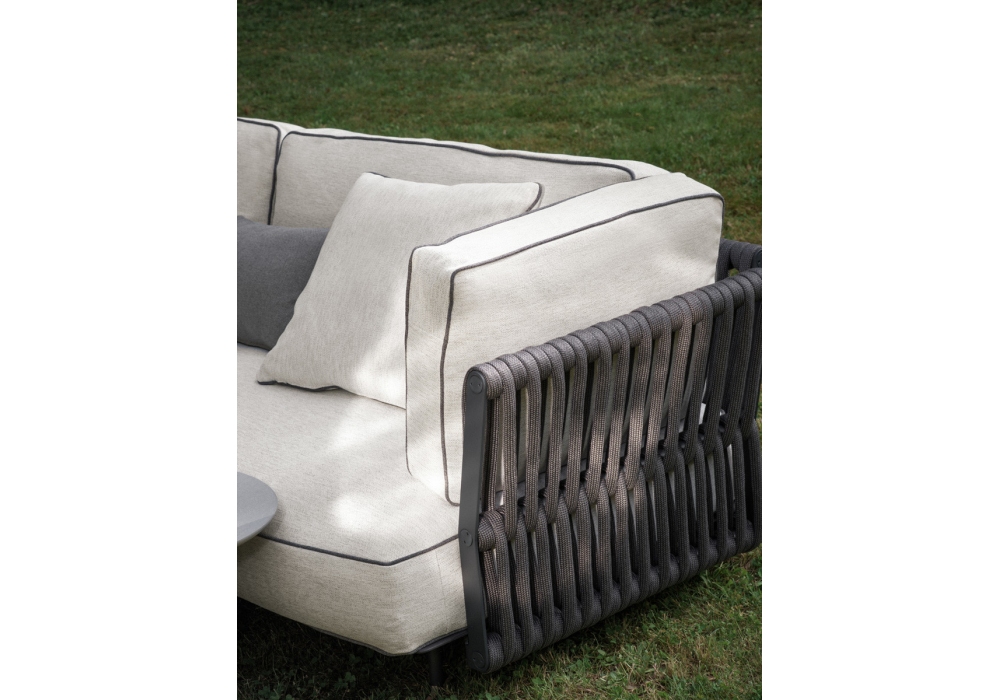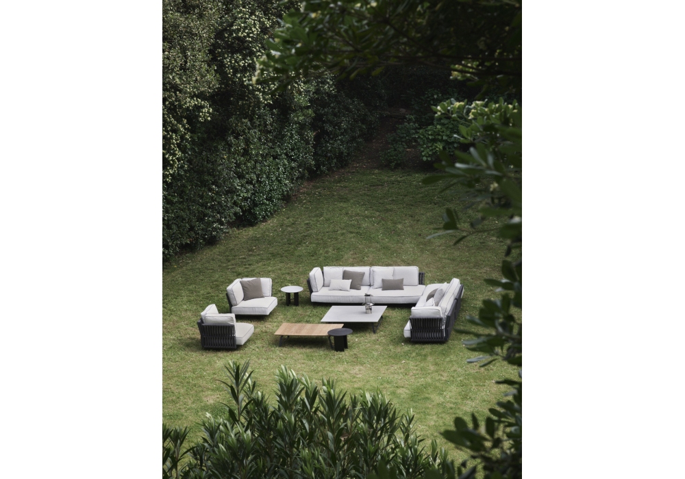 Soul conçu par Gabriele et Oscar Buratti pour Potocco est un canapé d'extérieur modulaire avec pieds en acier inoxydable et structure avec tissage rembourré anthracite. Les coussins de dossier et d'assise sont déhoussables et détachables de la structure et sont recouverts de différents tissus. Bordure contrastée sur demande.