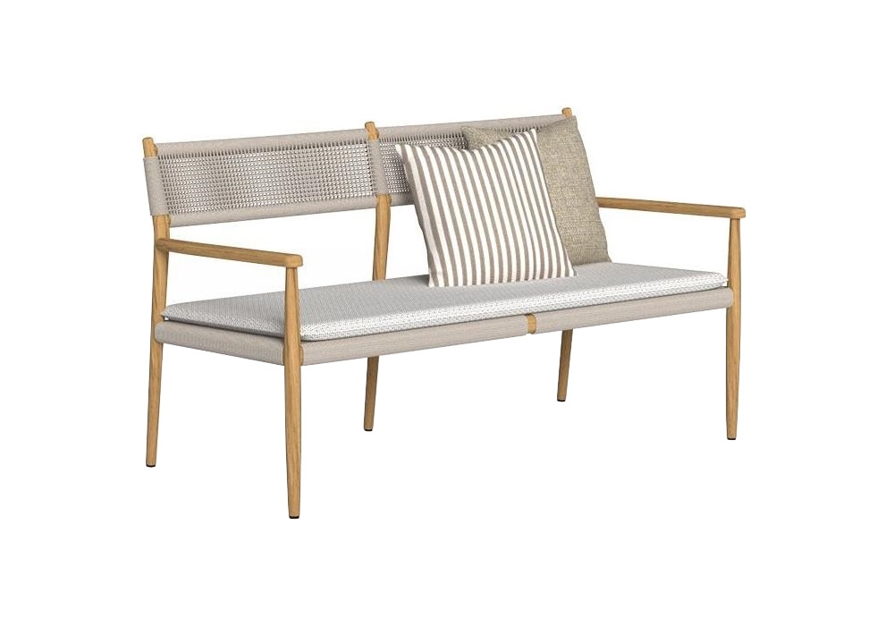 Dolcevita conçu par Talenti est un canapé avec structure en bois, dossier en cordes synthétiques rembourrées, assise et coussin recouverts de tissu. Disponible en différentes finitions.