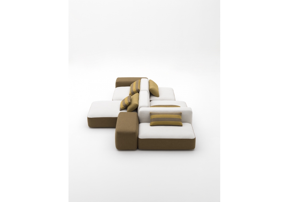 Dorvan conçu par Matteo Thun & Antonio Rodriguez pour Désirée est un canapé d'extérieur modulable réalisé avec une structure en tube d'acier galvanisé thermolaqué, rembourrage en mousse de polyuréthane et revêtement en tissu entièrement déhoussable. Également disponible en version bicolore.