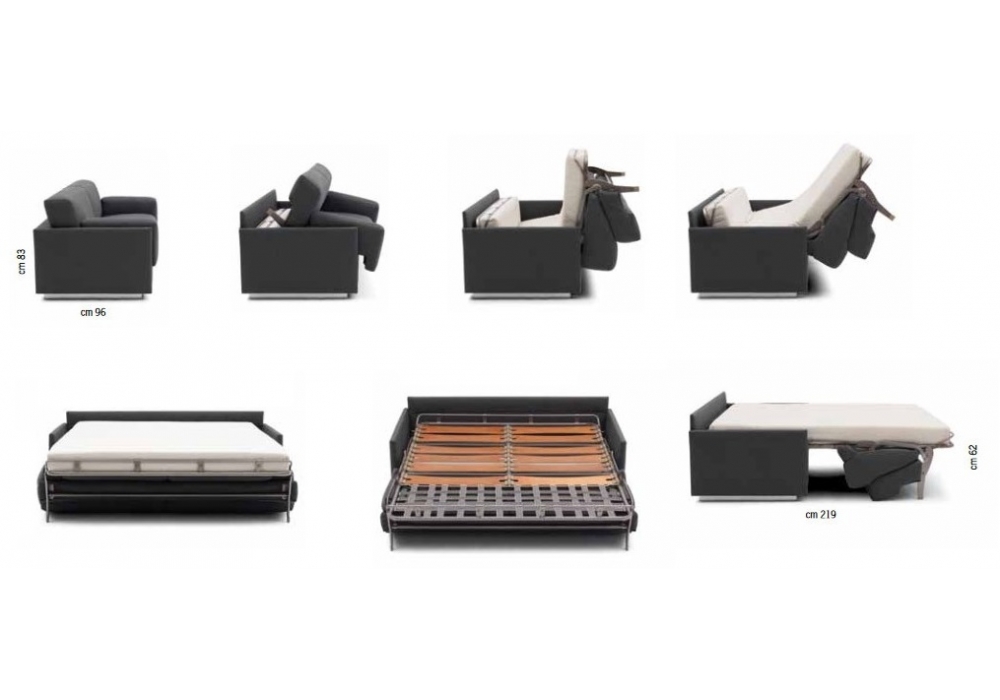 Lowe conçu par Campeggi est un canapé-lit avec revêtement entièrement dehoussable disponible en différentes couleurs. Le solide lit en hêtre laminé s'ouvre facilement sans enlever les coussins. Le matelas mesure 19 cm d'épaisseur et il est disponible en mousse de polyuréthane sans CFC, à ressort ou Memory. Également disponible en 4 dimensions.