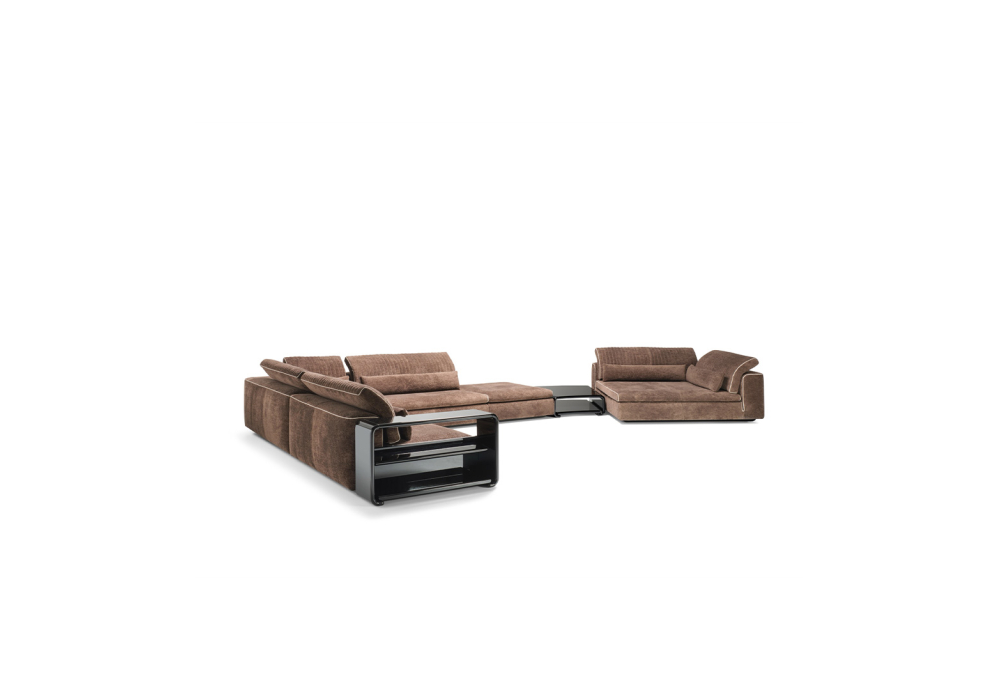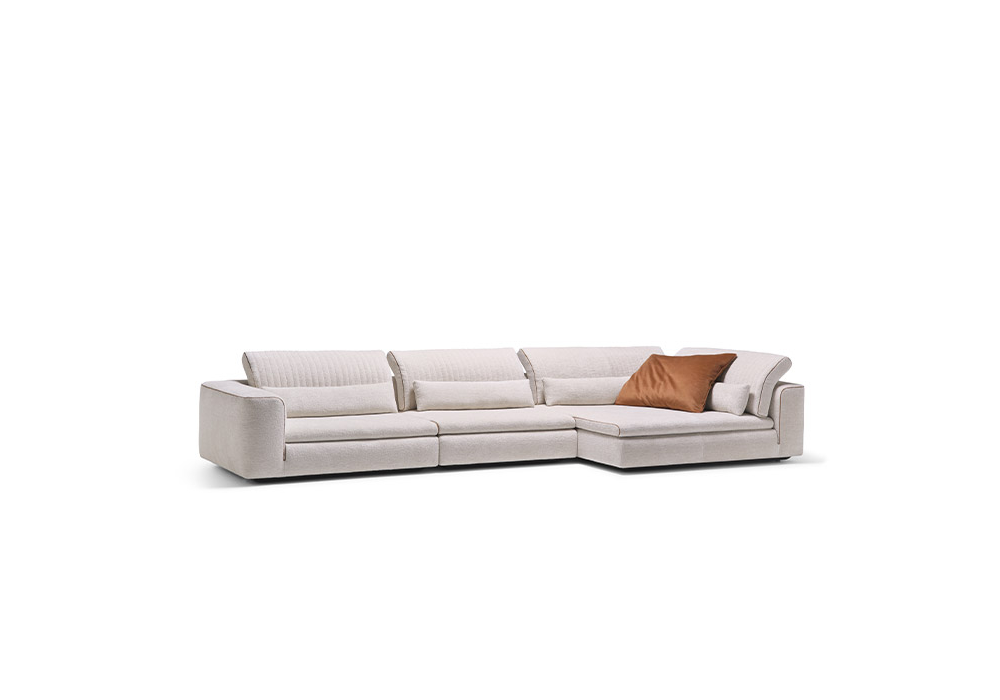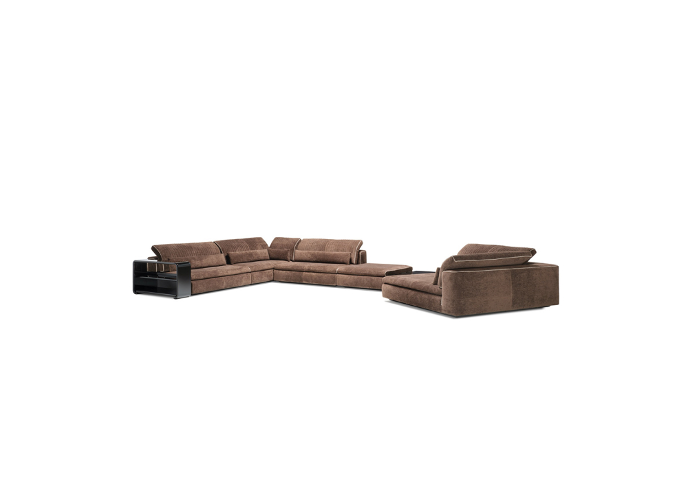 Julian conçu par Vincent Van Duysen pour Molteni&C est un système d'assise modulaire au design contemporain et accueillant, caractérisé par des proportions généreuses et un confort exceptionnel. Ses assises profondes et son rembourrage à densité variable, avec soutien lombaire intégré, garantissent maintien et souplesse dans le temps. Le coussin fin et légèrement concave crée un élégant effet de gradins, tandis que le passepoil contrastant souligne le profil avec une touche graphique distinctive. Composé de modules combinables, d'éléments centraux, d'éléments d'extrémité, d'une méridienne, d'un canapé-lit et d'îlots, il est également disponible avec un plateau optionnel permettant de transformer le pouf en une surface pratique.