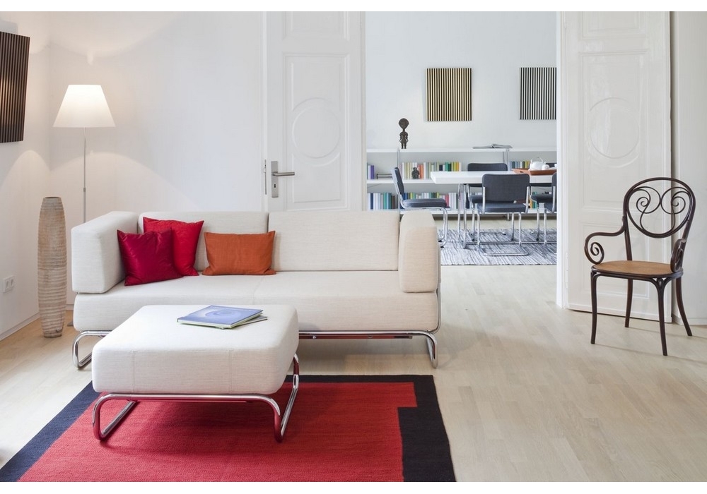 Program S 5000 est une canapé conçu par James Irvine pour Thonet. James Irvine réinvente ici le type de canapé qui faisait partie de la gamme Thonet dans les années 1930 : l'archétype même du canapé minimaliste avec un socle en tube d'acier courbé.