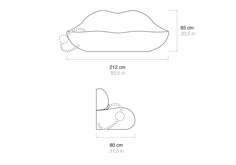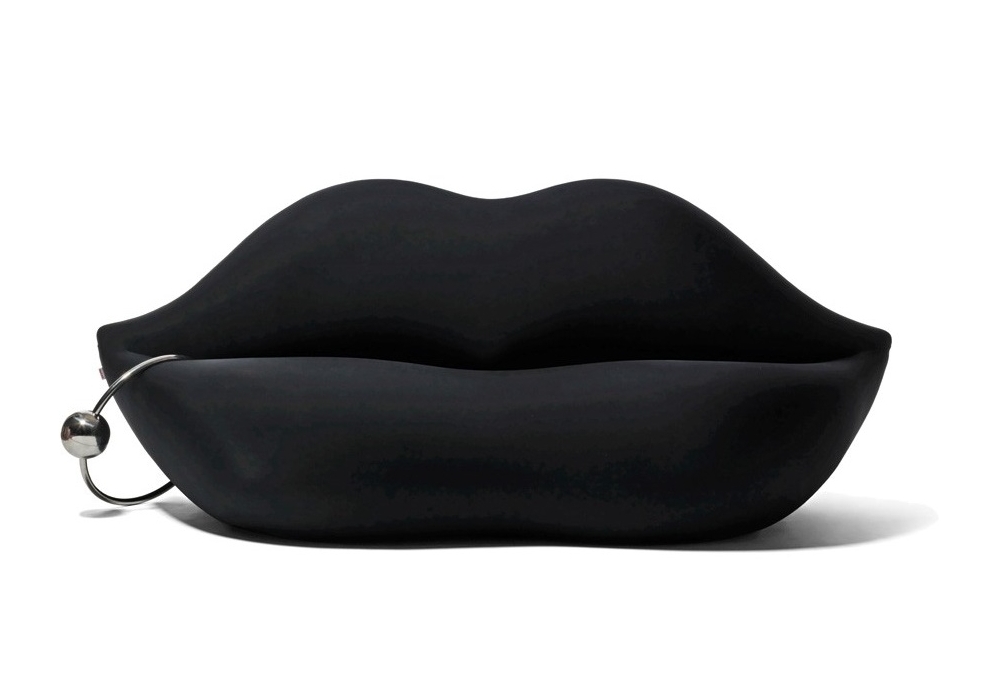 Dark Lady conçu par Studio 65 pour Gufram est un canapé rembourré en mousse de polyuréthane, recouvert de tissu noir. Dispose d'un piercing en métal chromé amovible sur un côté de la bouche. Sa forme s'inspire du "Portrait de Mae West" réalisé par l'artiste surréaliste Salvador Dalì, ce qui en fait un objet de design iconique pour la maison.