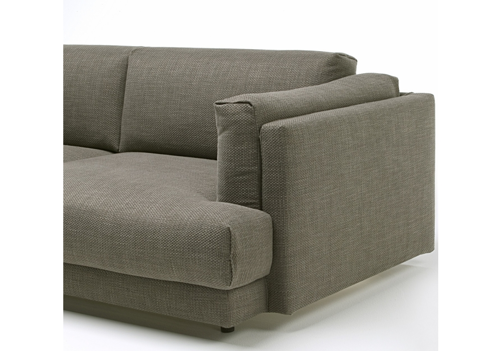 With the new proportions, Family Lounge designed by Piero Lissoni for Living Divani become an oasis of space for cultivating thought, readind and conversation. Fix or modular sofa with one-piece frame in double-paneled poplar and pine. Steel seat chassis with support in cross-woven, coated rubber elastic straps. Shell padding in differentiated density polyurethane foam. Covering in needle punched, resinated, non-woven polyester fibre, bonded onto a polyamide velveteen backing. Seat cushions in differentiated density polyurethane foam, coated with acrylic fibre layers. Back and armrest cushions in differentiated density polyurethane foam, coated with acrylic fibre layers, or on request, in prewashed and sterilized goose down, stitched into separate compartments, with preformed polyurethane foam insert. Anodized aluminum black feet, adjustable on three levels, from 7 to 10cm. Fabric or leather upholstery. The fabric version only is fully removable by zippers and Velcro fastenings. The leather version is always with non-removable upholstery. Seat depth 83cm.