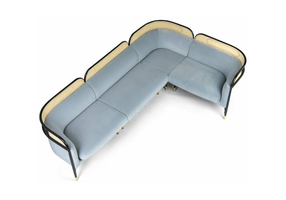 Targa conçu par GamFratesi pour Gebrüder Thonet Vienna est un canapé modulable avec structure en hêtre courbé disponible en différentes finitions, élément décoratif en paille de Vienne. Assise et dossier rembourrés avec revêtement en tissu ou en cuir. Existe aussi avec pieds en laiton.