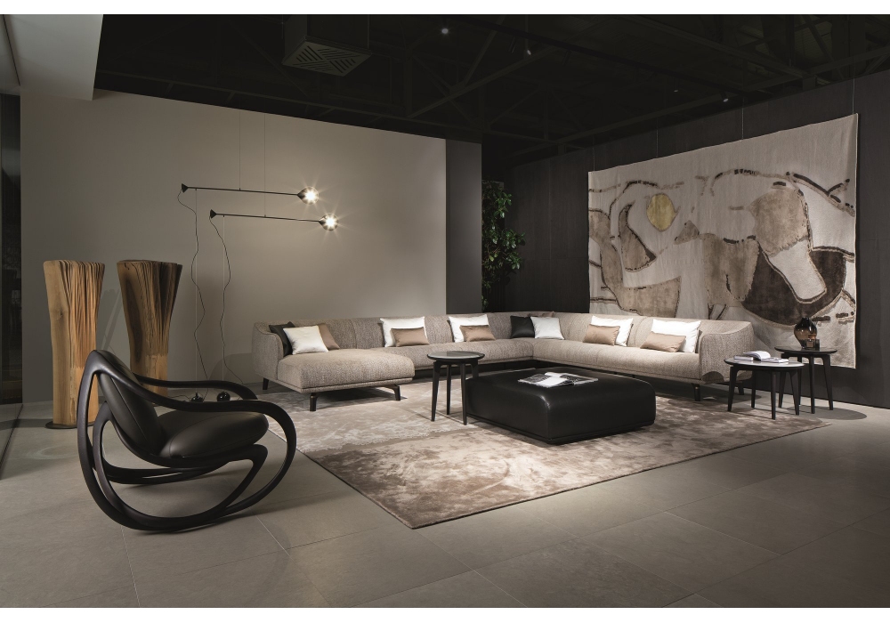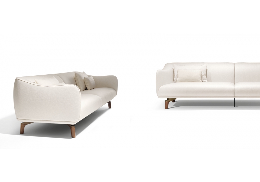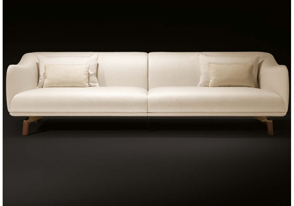 Drive designed by Carlo Colombo for Giorgetti is a sofas collection. Base in solid walnut canaletto with inserts painted in a bronze colour with natural effect. Not removable upholstery in fabric or leather, with always a leather piping available in various colour shades.