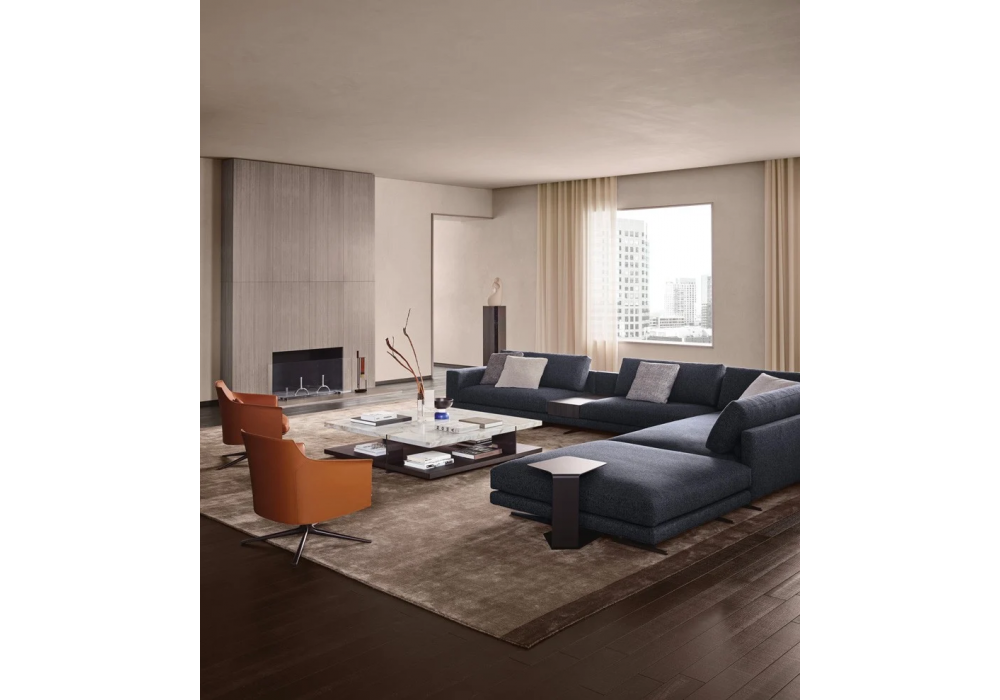 Mondrian designed by Jean-Marie Massaud for Poliform is a modular sofa for indoor use. Available in different compositions with a wide choice of fabrics and leathers. The accessories are also available in wood finish.