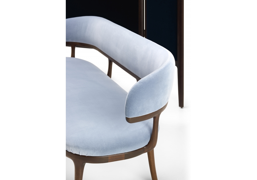 Peggy G signé par Roberto Lazzeroni pour Ceccotti Collezioni est un petit canapé avec structure en noyer américain massif. Revêtement en tissu, cuir ou cuir naturel.