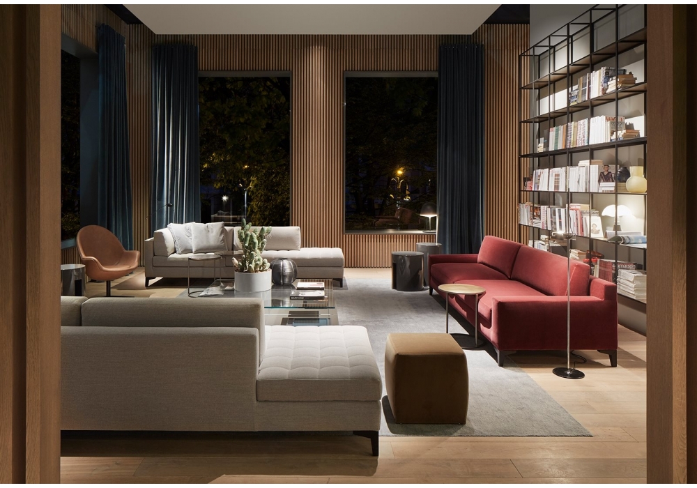 Prince designed by Andrea Parisio for Meridiani is a sofa with wooden frame and non-deformable polyurethane padding. Feet in black, light and almond stained wood. Upholstery available in fabric or leather. Made of different sizes with possibility of different modular configurations.