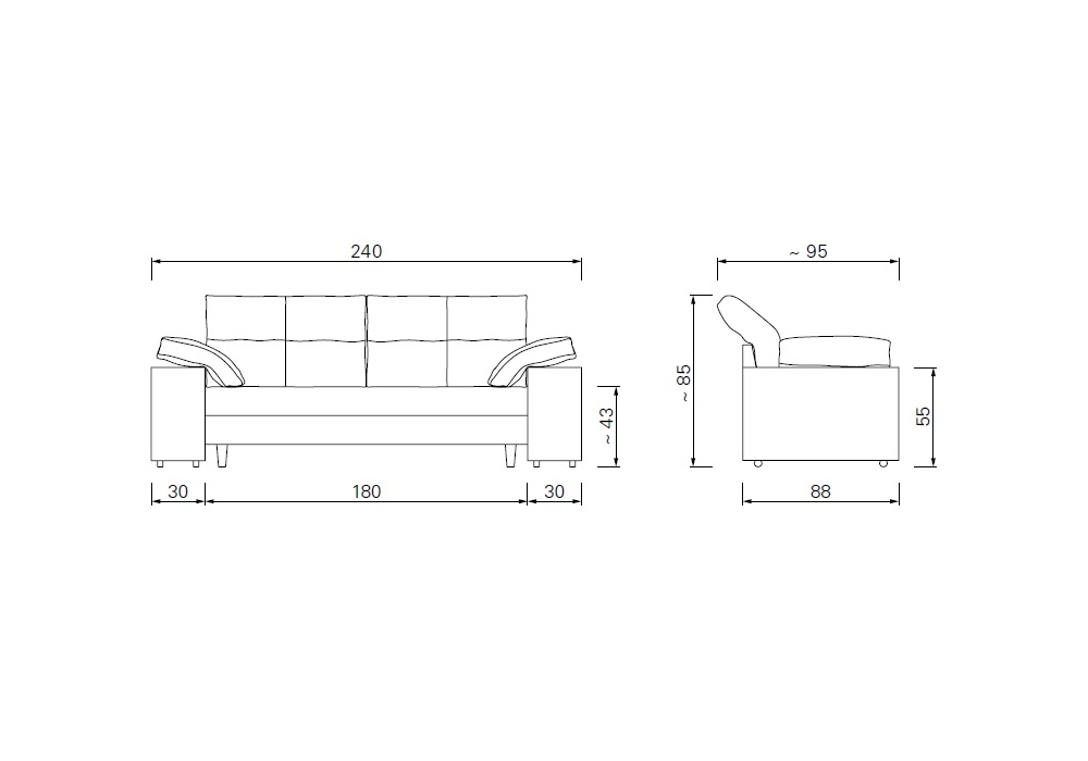 latérales sur roulettes en MDF laquées brillant. Toujours noir devant et derrière. Revêtement en tissu ou cuir.