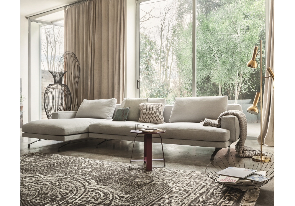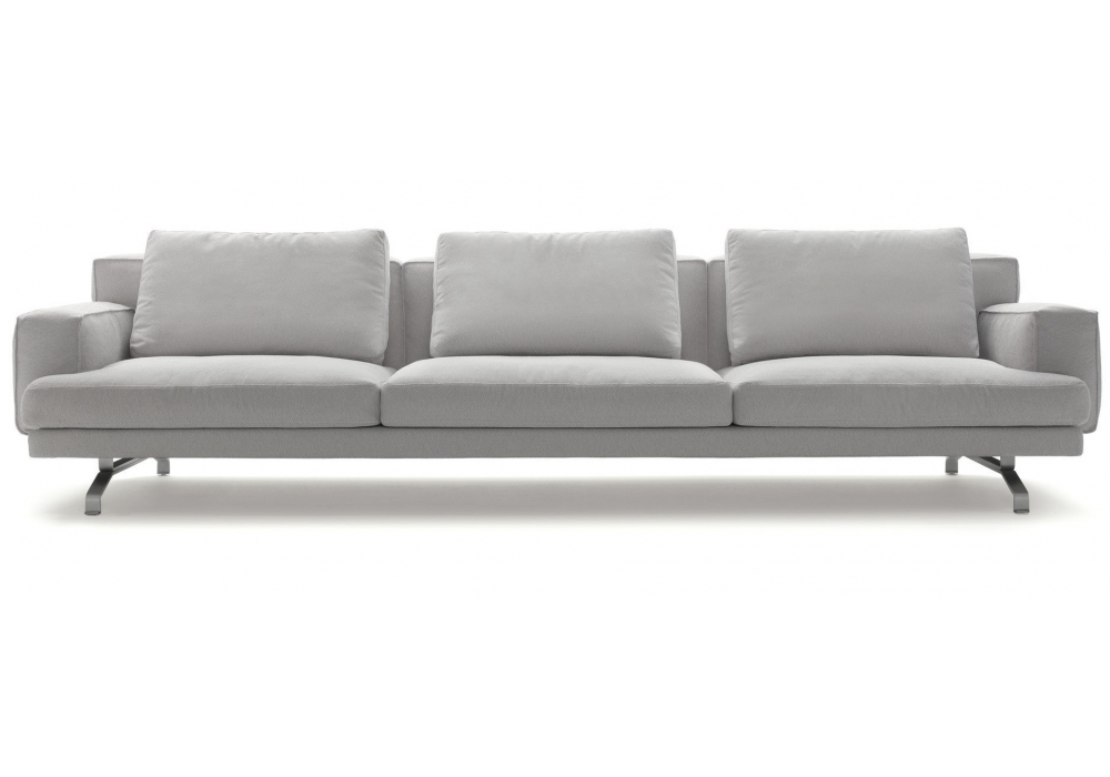 Mustique, conçu par Gordon Guillaumier pour Lema, est un canapé disponible en version fixe et en différentes configurations modulaires. Structure en métal avec sangles élastiques croisées à haute teneur en caoutchouc. Accoudoirs et dossiers en contreplaqué. Revêtement en tissu ou en cuir. Base en métal finition acier ou titane.