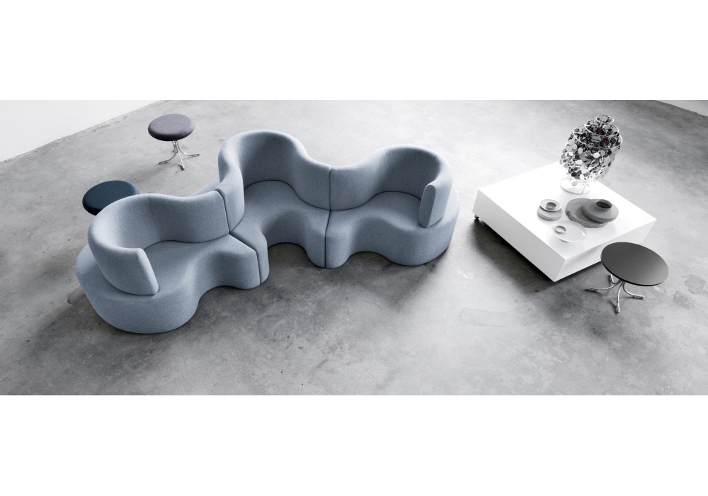 Cloverleaf conçu par Verner Panton pour Verpan est un canapé modulaire avec structure en bois (18 mm de contreplaqué et de pin). Assise rembourré avec mousse CMHR et dossier moulée avec insert métallique. Revêtement disponible en plusieurs tissus et cuirs. Disponible en différentes configurations.