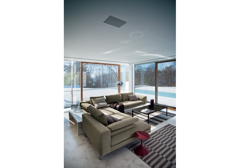 1335 Bruce conçu par Ludovica & Roberto Palomba pour Zanotta est un canapé avec structure en acier et revêtement en tissu ou cuir. Pieds en alliage d'aluminium poli, nickelé naturel ou noir ou peint en noir. Disponible en différentes dimensions.