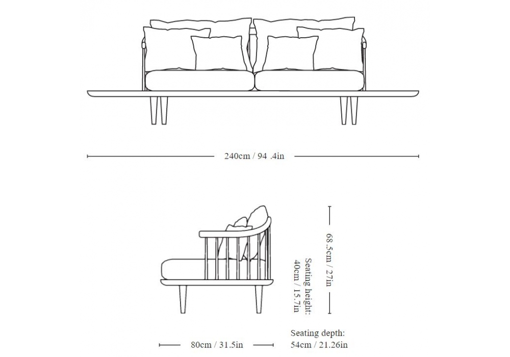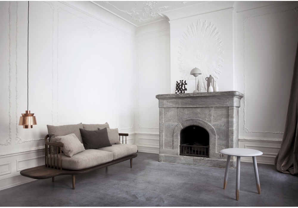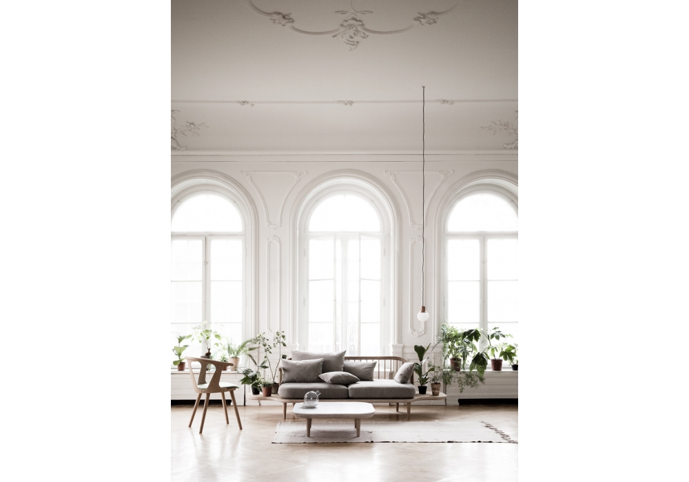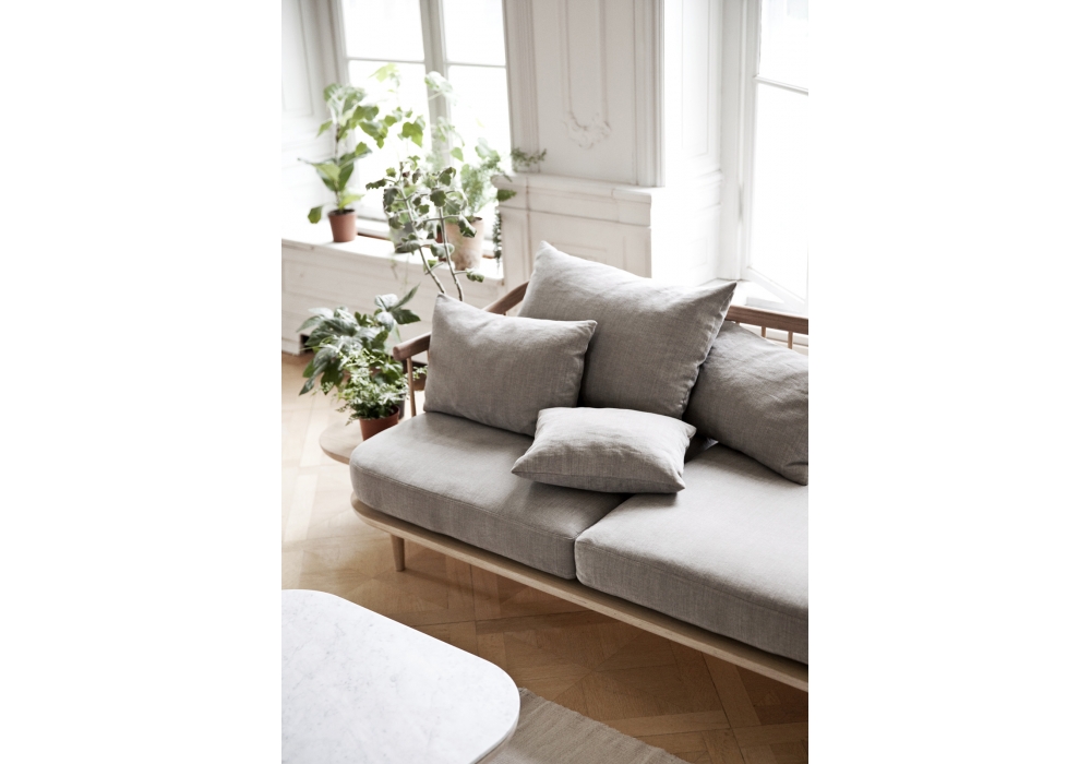 Fly conçu par Space Copenhagen pour & Tradition est un canapé réalisé avec structure et base en chêne huilé. Coussins en mousse HR et plumes. Revêtement en tissu. Disponible en différentes finitions et modèles.