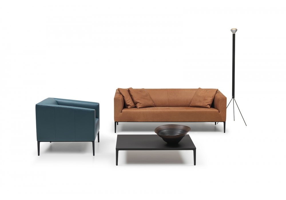 DS-161 conçu par de Sede Design Team pour De Sede est un canapé avec structure compacte en bois contreplaqué et pieds en aluminium poli et rembourrage en différents cuirs. Disponible en deux dimensions.