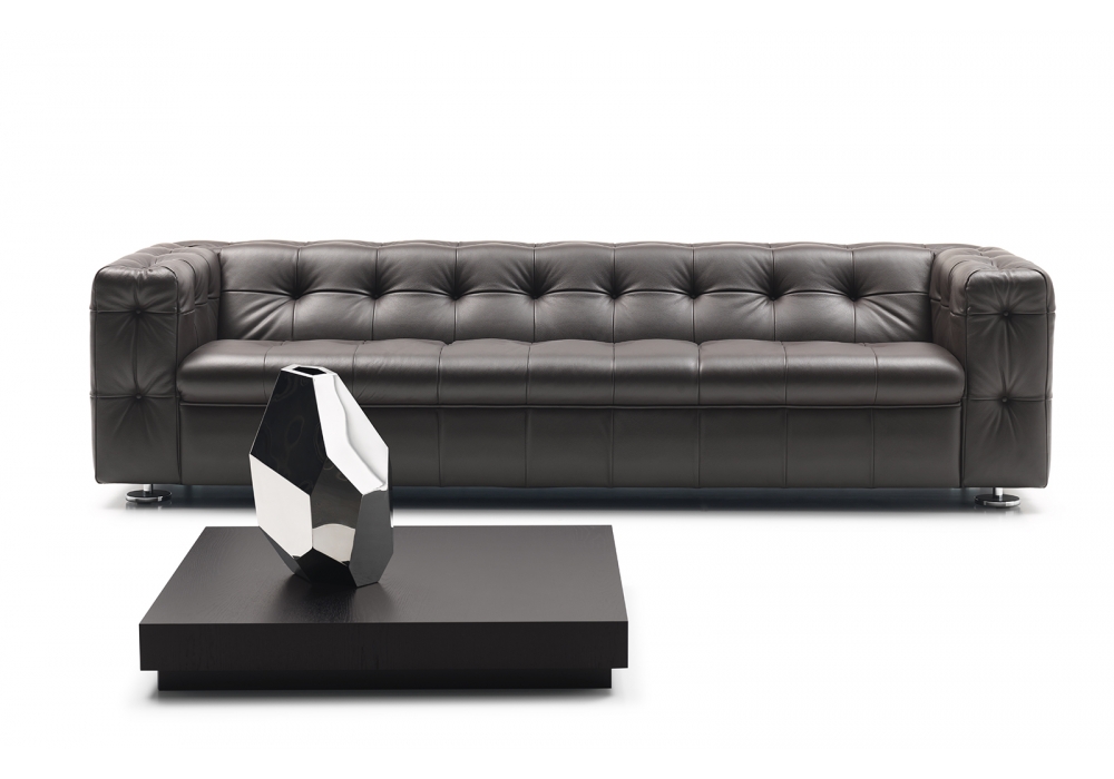 RH-306 conçu par Robert Haussmann pour De Sede est un canapé avec structure compacte en bois contreplaqué et pieds ronds en métal chromé poli, disponible en trois dimensions. Rembourrage disponible en différents cuirs.