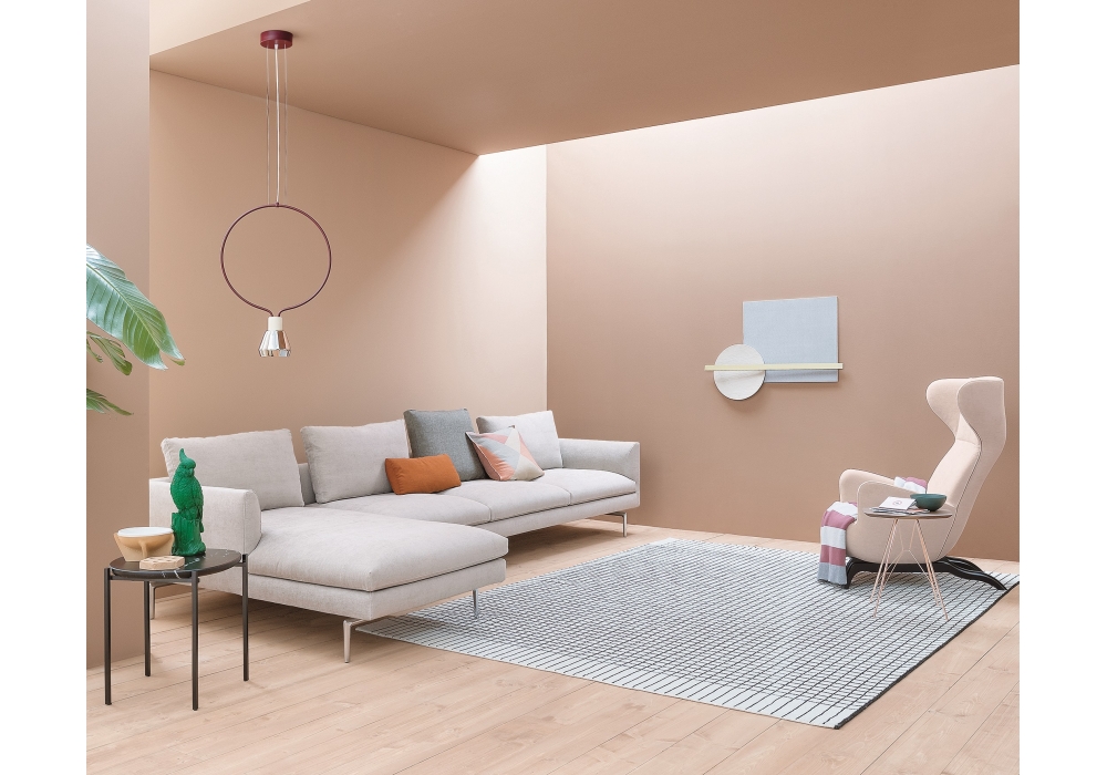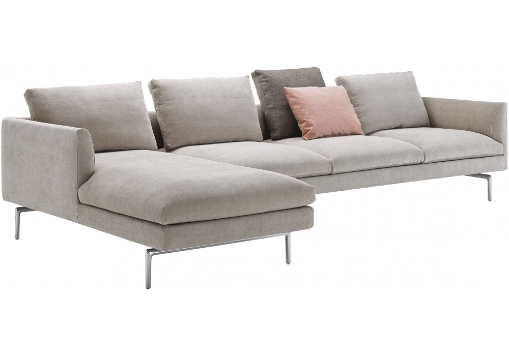 1333 Flamingo conçu par Damian Williamson pour Zanotta est un canapé avec structure en acier et revêtement en tissu ou cuir. Sautant sur des bandes élastiques. Rembourrage en polyuréthane / fibre polyester liée à chaud. Pieds en aluminium poli, nickelé naturel ou noir, ou peint en noir. Disponible avec ou sans coussins.