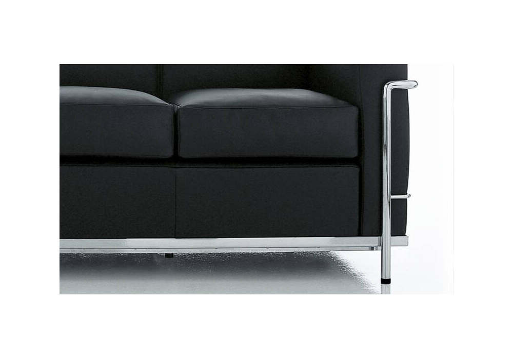 2 Fauteuil Grand Confort, Petit Modèle, Trois Places conçu par Le Corbusier, Pierre Jeanneret, Charlotte Perriand pour Cassina est un canapé 3 places réalisé avec une structure chromée ou peinte et des coussins rembourrés avec revêtement en tissu ou cuir.