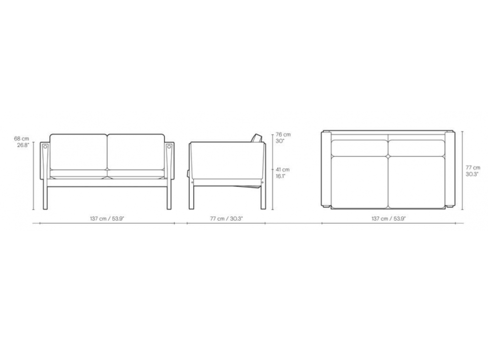 CH162 conçu par Hans J. Wegner pour Carl Hansen & Søn est un canapé avec structure en bois de chêne ou noyer disponible en différentes finitions. Siège et dossier rembourrés, avec revêtement disponibles en différents tissus ou cuirs.
