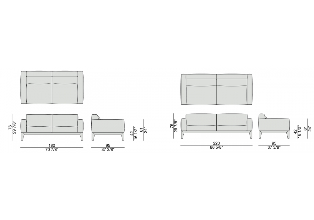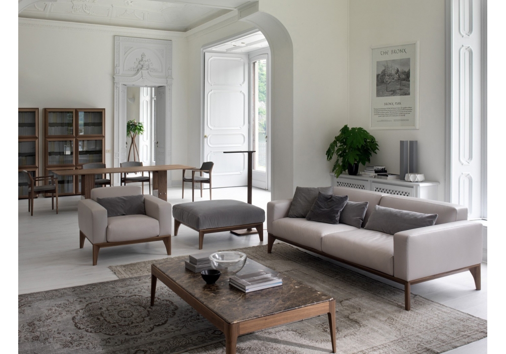 Fellow conçu par Marconato & Zappa pour Porada est un canapé avec structure en noyer canaletta massif ou laqué mat pore fermé et rêvetement disponible en différents types de cuir ou de tissu. Disponible en deux dimensions différentes et avec coussin pour dossier.