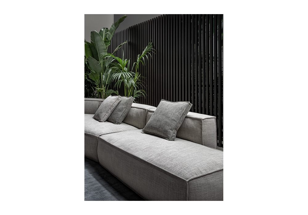 Peanut B conçu par Mauro Lipparini pour Bonaldo est un canapé modulable avec revêtement en tissu complètement déhoussable, en différentes finitions. Les pieds sont en bois peint gris anthracite. Disponible en différentes compositions.