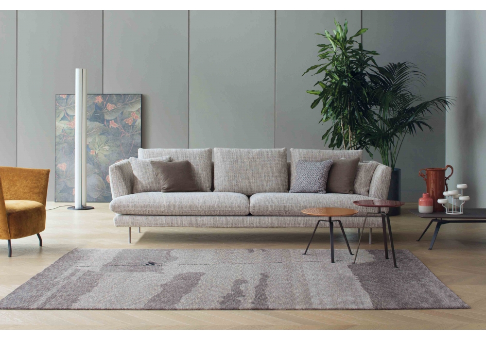 Lars conçu par Giuseppe Viganò pour Bonaldo est un canapé déhoussable en tissu ou cuir, avec base façonnée ou pieds en métal verni mat. Disponible en différentes tailles.