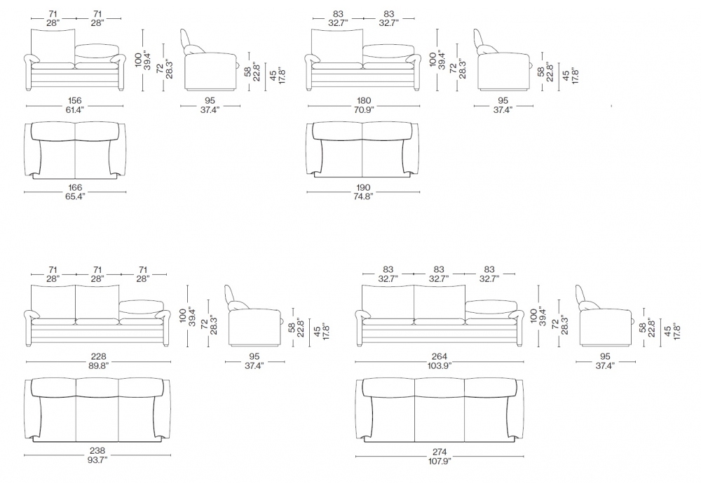 | Dimensions | 166 x 95 x H 72/100 cm; 190 x 95 x H 72/100 cm; 238 x 95 x H 72/100 cm; 274 x 95 x H 72/100 cm. |