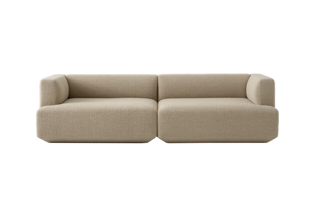 Develius conçu par Edward van Vliet pour &Tradition est un canapé modulable réalisé avec structure en bois, ressorts en zigzag, mousse HR, rembourrage en polyester et revêtement en tissu ou cuir. Supports métalliques pour connecter les modules.