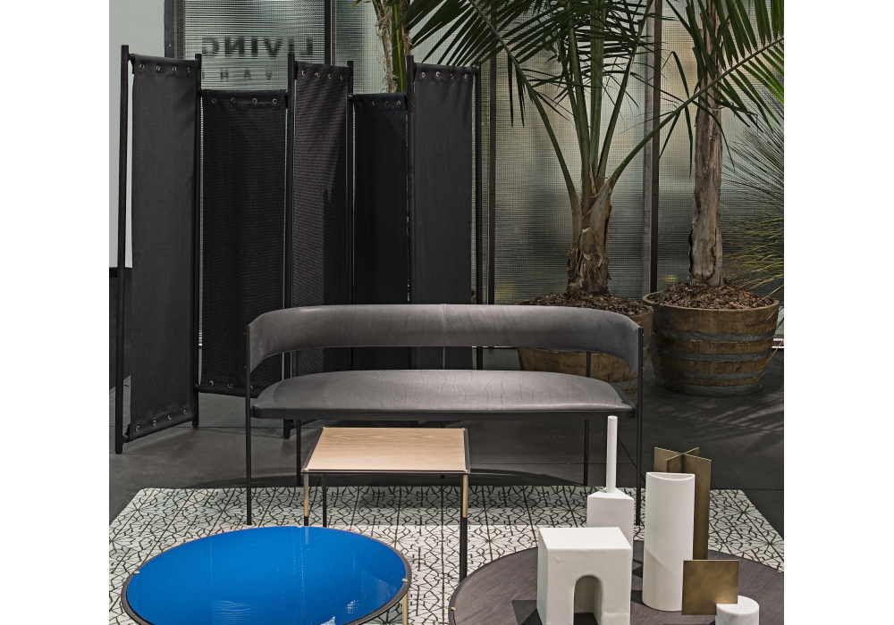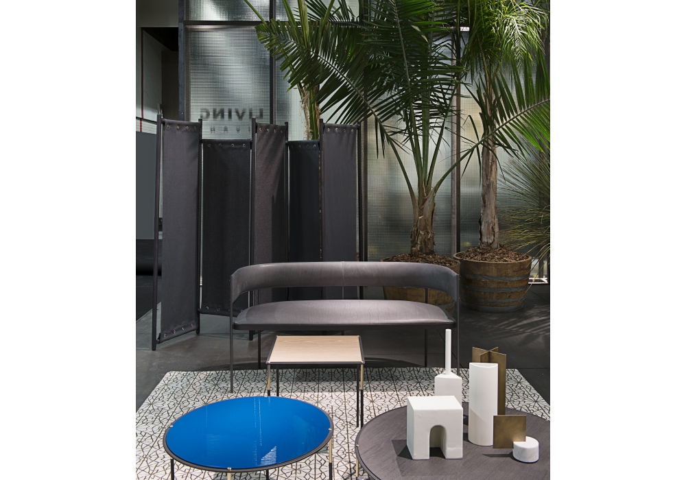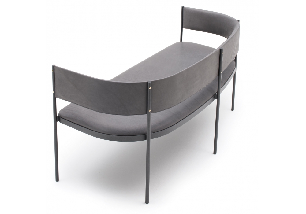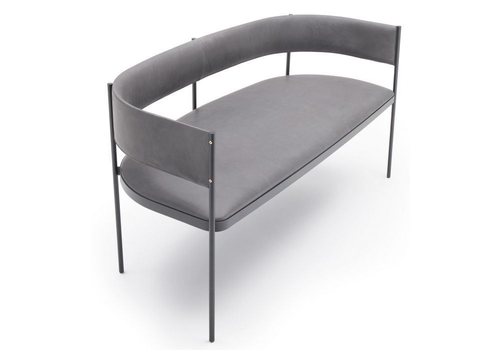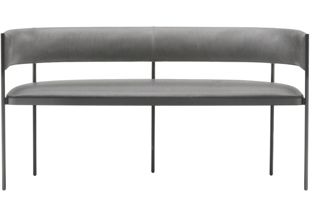 Era Settee conçu par David Lopez Quincoces pour Living Divani est un petit canapé avec structure en acier couleur gunmetal. Revêtement en tissu ou en cuir.