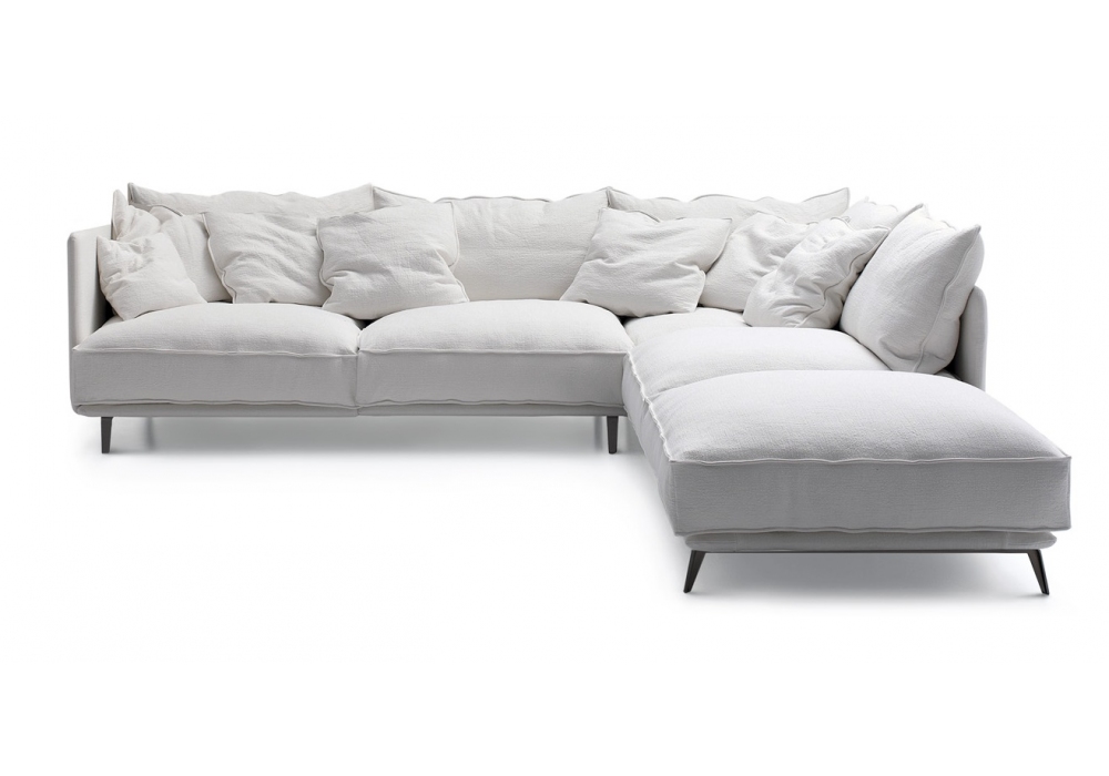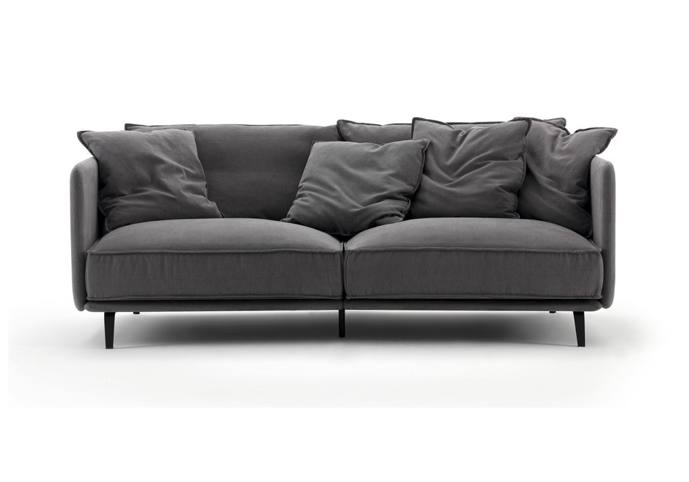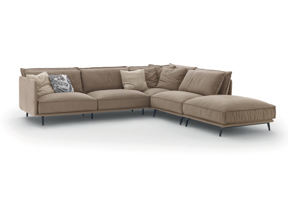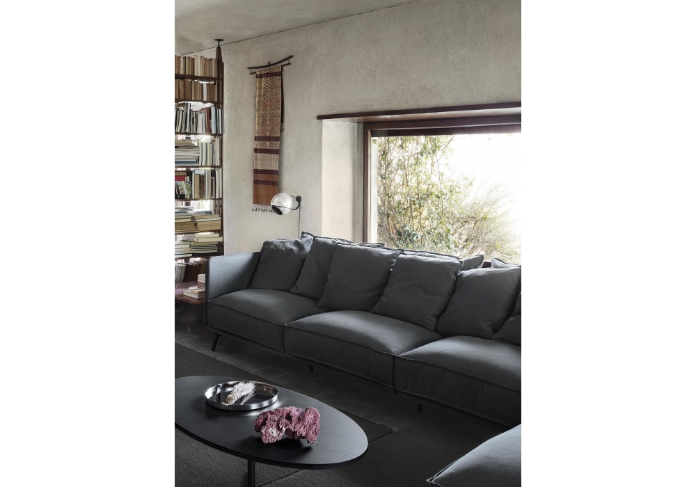 K2 conçu par Carlo Colombo pour Arflex est un canapé disponible en configuration fixe ou modulaire. Pieds en métal laqué noir ou bruni. Coussin d'assise en polyuréthane profilé à densité différenciée et garnissage en duvet d'oie/plumes. Coussins de dossier garnis de duvet d'oie/plumes. Revêtement en tissu ou cuir.