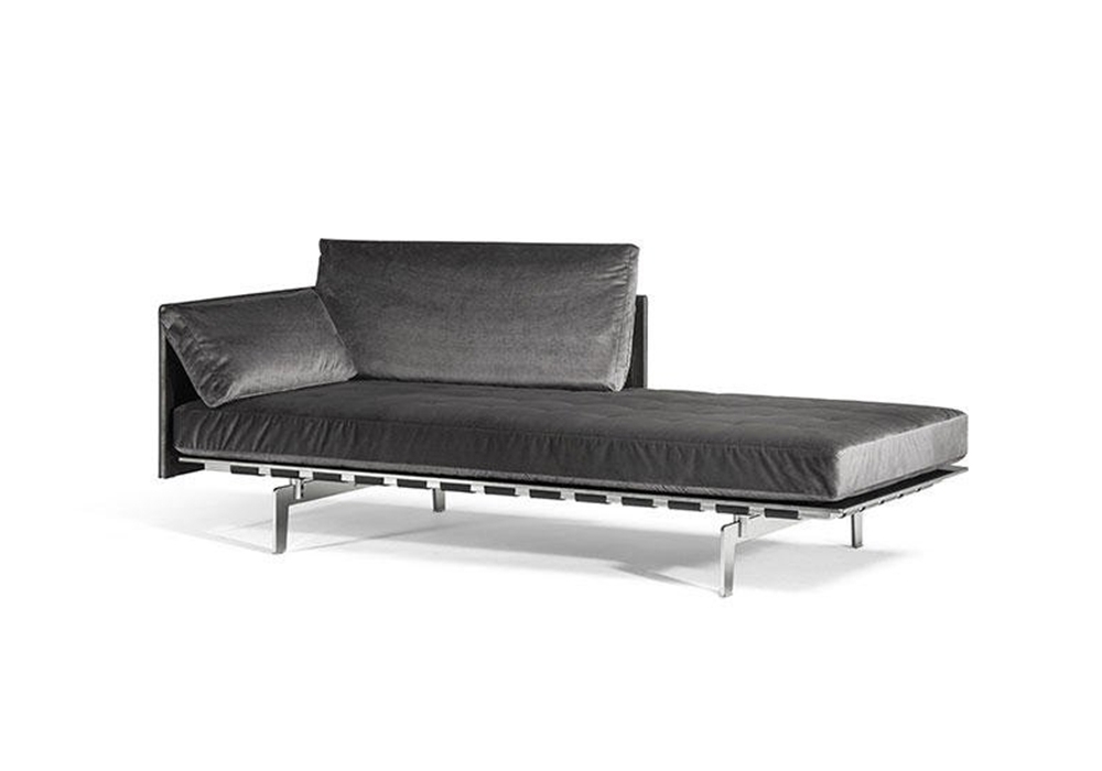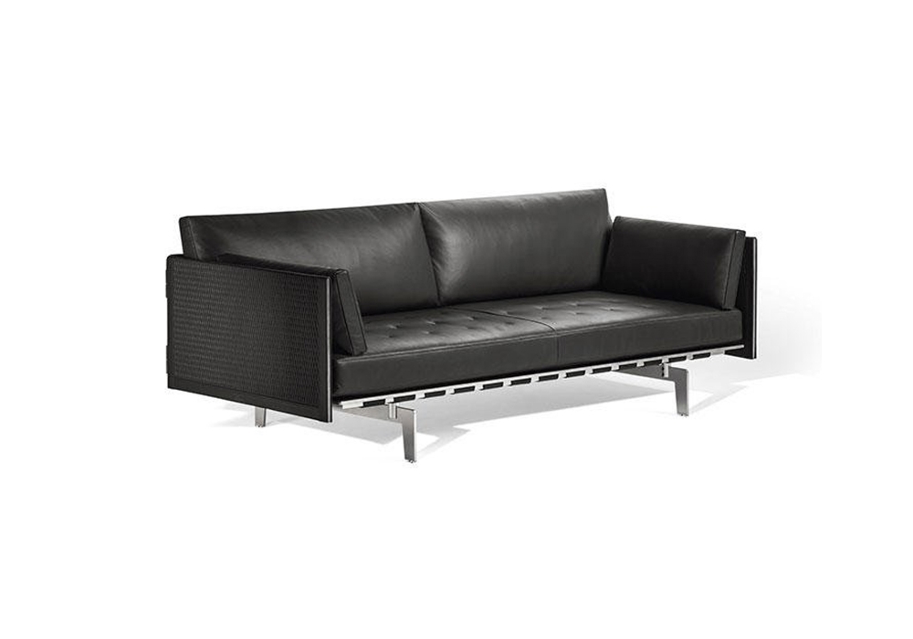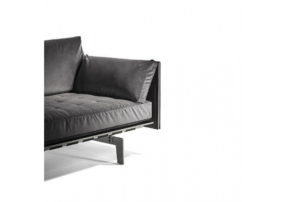 Clayton conçu par Jean Marie Massaud pour Poltrona Frau est un canapé avec structure en acier et aluminium et pieds en acier. Revêtement de coussins et panneaux en cuir Pelle Frau disponible en différentes finitions. Aussi disponible en 3 modèles.