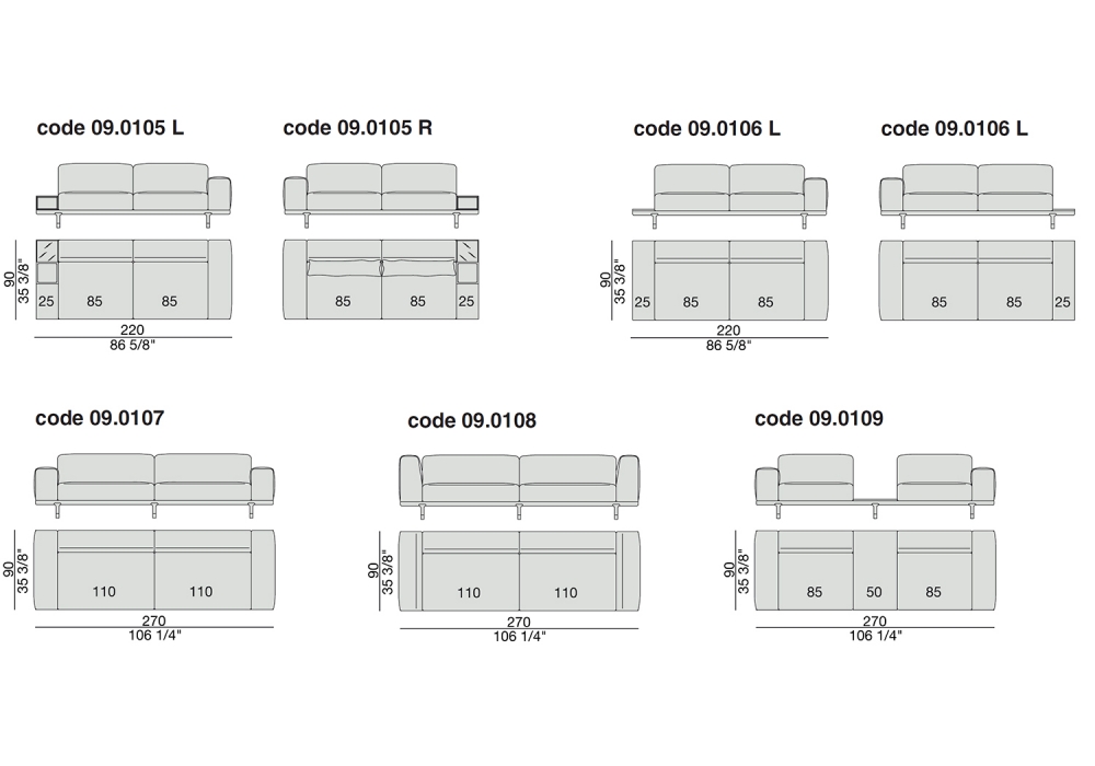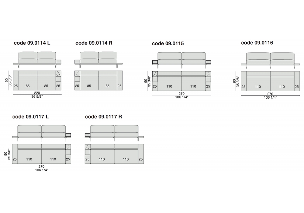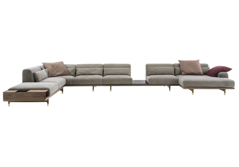 Argo conçu par D. Dolcini pour Porada est un canapé avec structure en noyer canaletto, pieds en laiton, éléments en marbre et revêtement en tissu. Disponible en différentes finitions.
