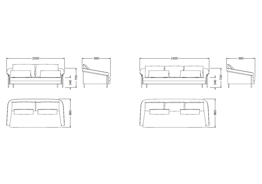 | Dimensions | • 200 x 98 x H 70 cm; • 240 x 98 x H 70 cm |
