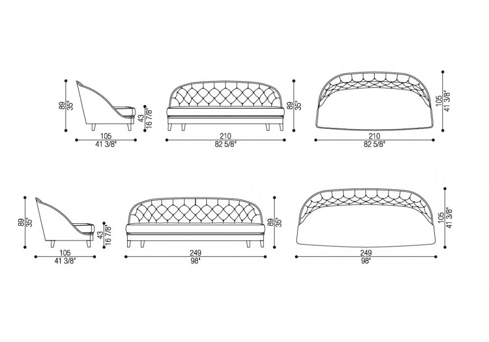| Dimensions | 210 x 105 x H 89 cm; 249 x 105 x H 89 cm |
