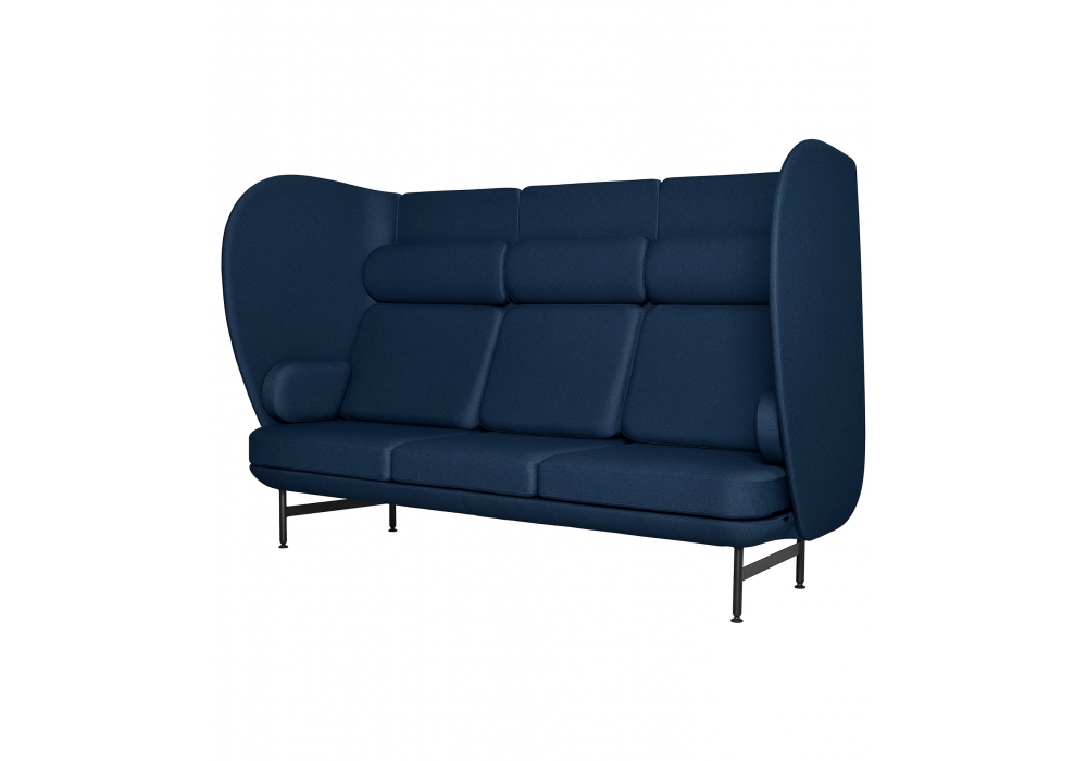 Plenum conçu par Jaime Hayon pour Fritz Hansen est un canapé à haut dossier avec base en acier verni en poudre noir et revêtement en tissu. Table d'appoint et unité d'alimentation supplémentaire comme accessoires. Disponible aussi en 2 dimensions.
