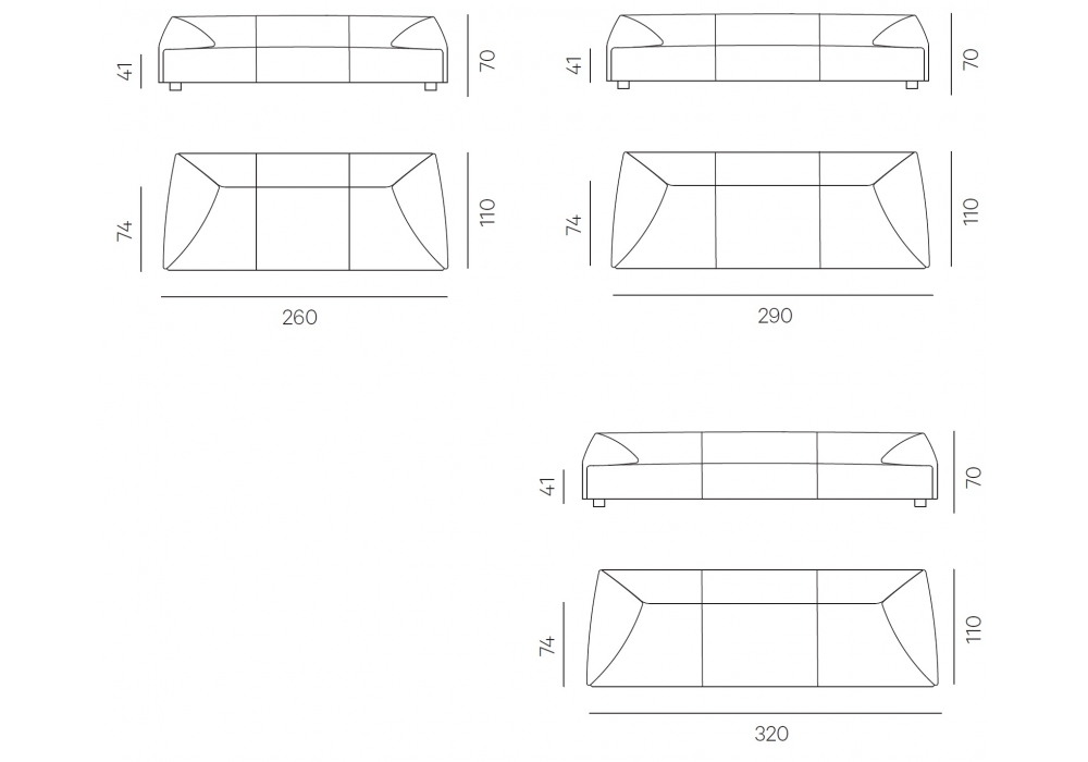 | Dimensions | 260 x 110 x H 70 cm; 290 x 110 x H 70 cm; 320 x 110 x H 70 cm. |