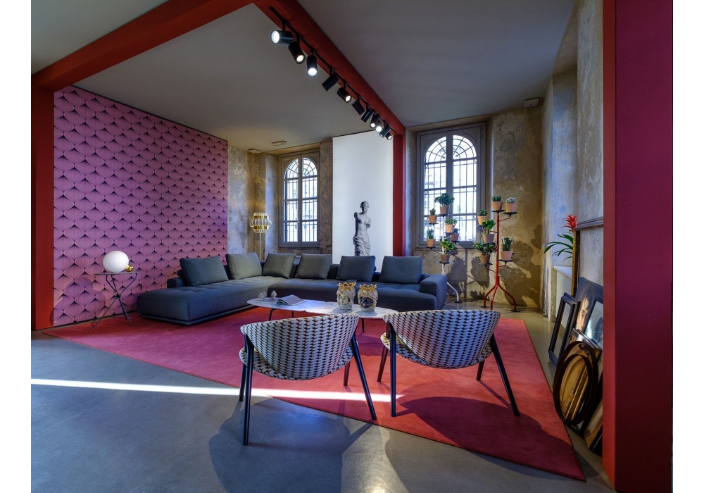 1247 Shiki conçu par Damian Williamson pour Zanotta est un canapé avec coussin de siège matelassé, disponible en configuration fixe ou modulaire. Revêtement déhoussable en tissu ou en cuir. Base en bois revêtu dans même tissu que le canapé.