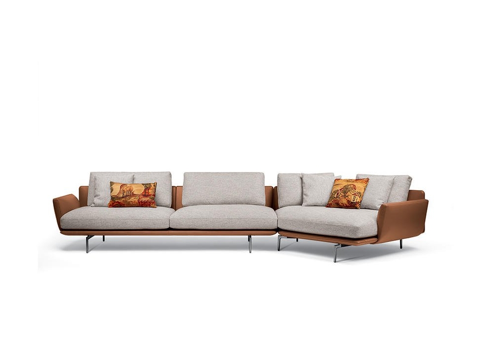Get Back conçu par Ludovica + Roberto Palomba pour Poltrona Frau est un canapé modulable en différentes configurations. Entièrement tapissé en cuir Pelle Frau® ou dans une combinaison de deux matériaux. Pieds en aluminium moulé avec finition ruthénium et embouts en plastique noir.