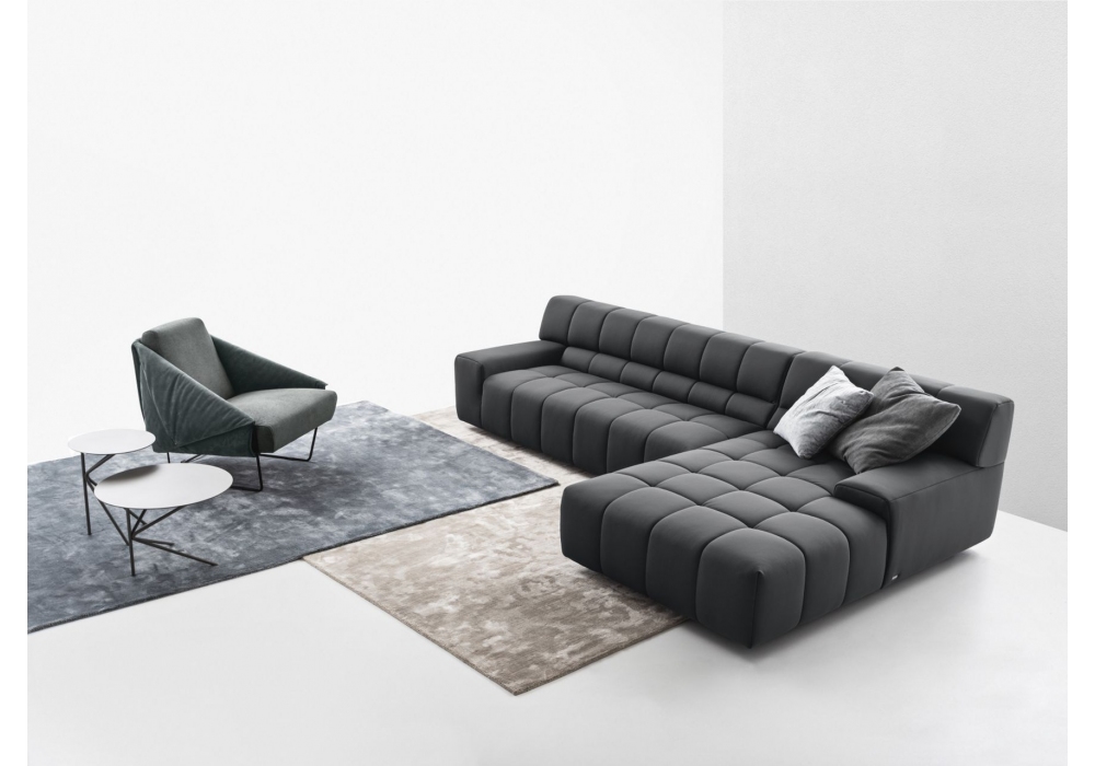 Bric conçu par Nicoline est un canapé avec structure en bois et contreplaqué, assise et dossier à ressorts muni de sangles élastiques et rembourré avec un rabat en tecnoform. Couverture en tissu ou en cuir, non amovible. Pieds en matière thermoplastique noire.