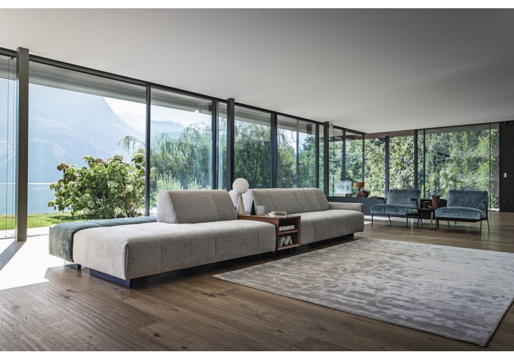 Zara Light conçu par Nicoline est un canapé avec structure en bois et contreplaqué, assise et dossier à sangles élastiques. Accoudoir en métal recouvert de mousse de polyuréthane. Rembourrage en mousse de polyuréthane écologique de différentes densités. Recouvert de tissu ou de cuir, l'accoudoir sera fabriqué en cuir. Pieds en bois laqué noir brillant. Éléments de table basse en bois en option avec finition noca canaletto.