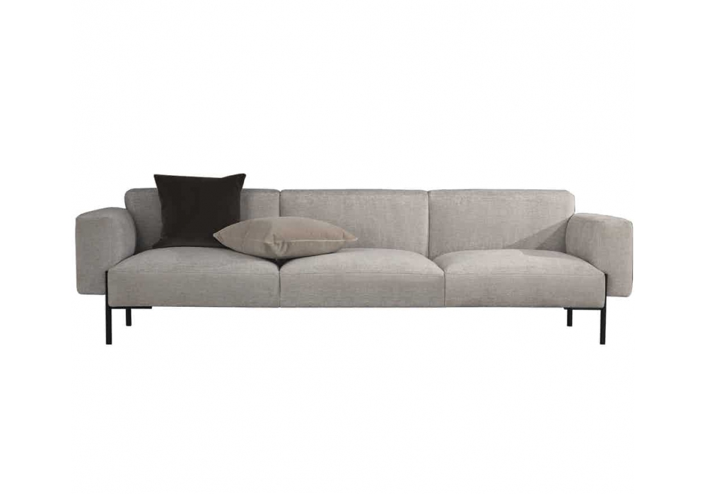 Hang conçu par Toan Nguyen pour wendelbo est un canapé avec pieds en acier enduit de poudre noire, rembourrage en mousse haute résilience et en duvet. Revêtement en cuir ou tissu. Disponible en 2 modèles.