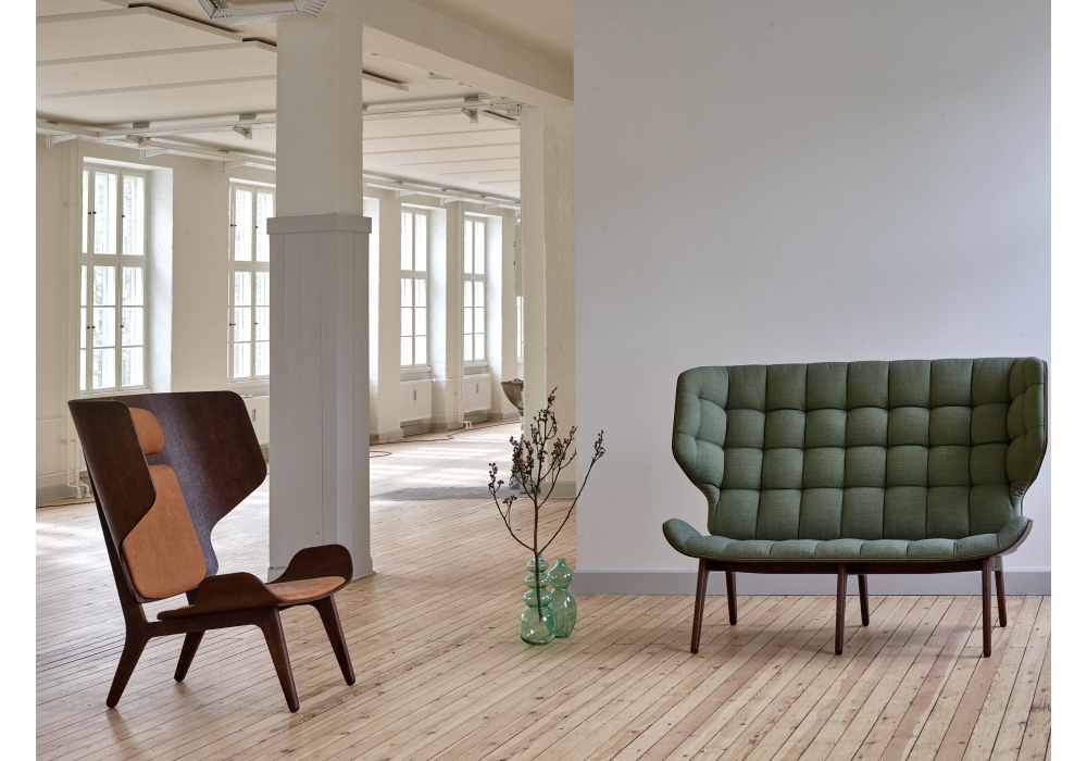 Mammoth Sofa conçu par Rune Krøjgaard et Knut Benedik Humlevik pour Norr11 est un canapé avec structure en chêne massif. Le canapé est disponible en quatre variantes de structure: Naturel, teinté foncé, noir et fumé, il peut être recouvert de cuir ou de tissu.