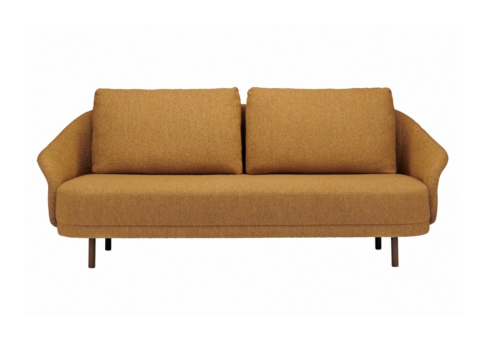 New Wave conçu par Kristian Sofus Hansen et Tommy Hyldahl pour Norr11 est un canapé avec structure en bois de hêtre. Disponible en deux sièges avec pieds en bois dans différentes finitions ou en laiton et revêtement en tissu.