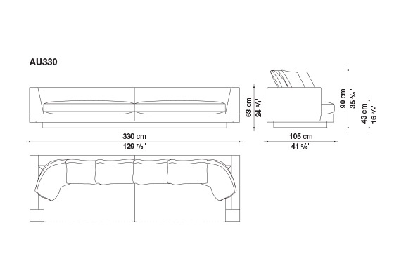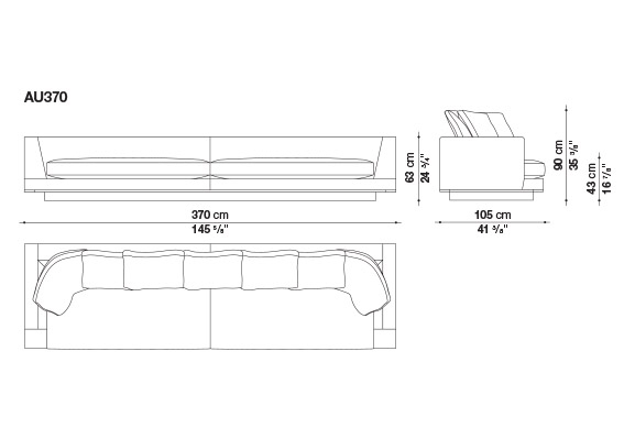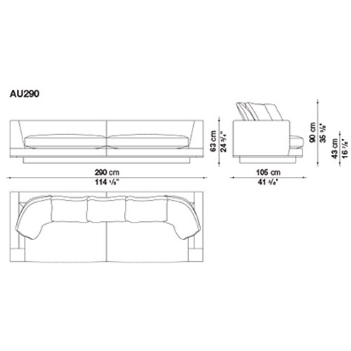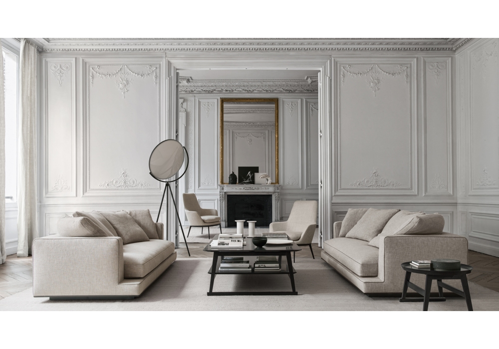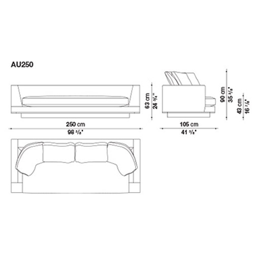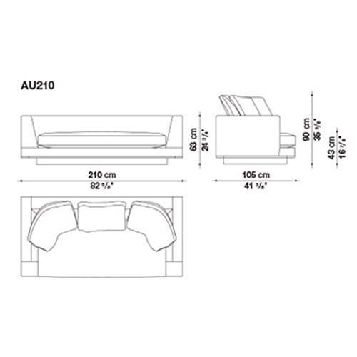 Aurae conçu par Antonio Citterio pour Maxalto est un canapé avec bord inférieur en aluminium peint et revêtement en différents tissus ou cuirs. Les profils sont en éco-cuir dans différentes finitions pour la version en tissu et les coutures des profils ton sur ton pour le revêtement en cuir.