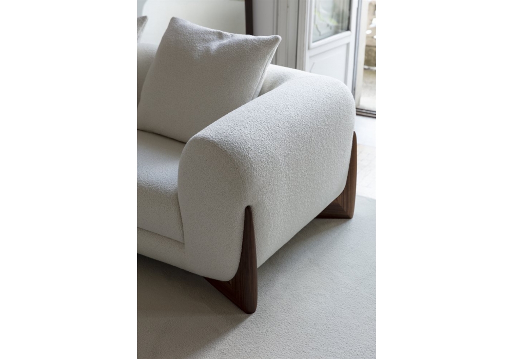 Softbay conçu par Giuseppe Viganò pour Porada est un canapé avec pieds en noyer canaletta massif ou laqué à pores fermés, revêtement amovible en tissu.