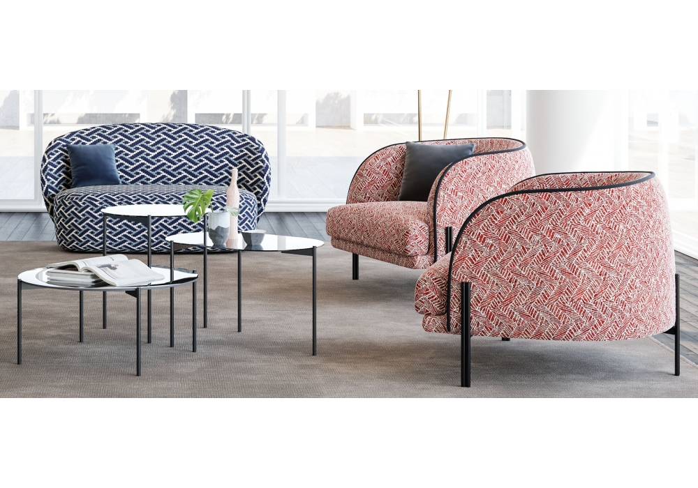 Guest designed by Liu Jo Living Collection est une collection de canapés et de fauteuils. La structure est faite de bois de sapin massif, de contreplaqué, de fibre de bois. Pied en PVC invisible. Le rembourrage est disponible en tissu ou en cuir. Un pouf assorti est disponible.
